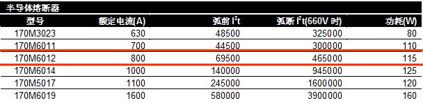 半導(dǎo)體熔斷器170M6012的數(shù)據(jù)見下表: