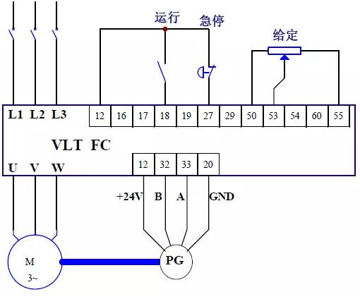 如果編碼器信號直接接變頻器 32、33 端子,請使用 24VDC、推挽電壓輸出 HTL 邏輯電平 的 A/B 相增量編碼器