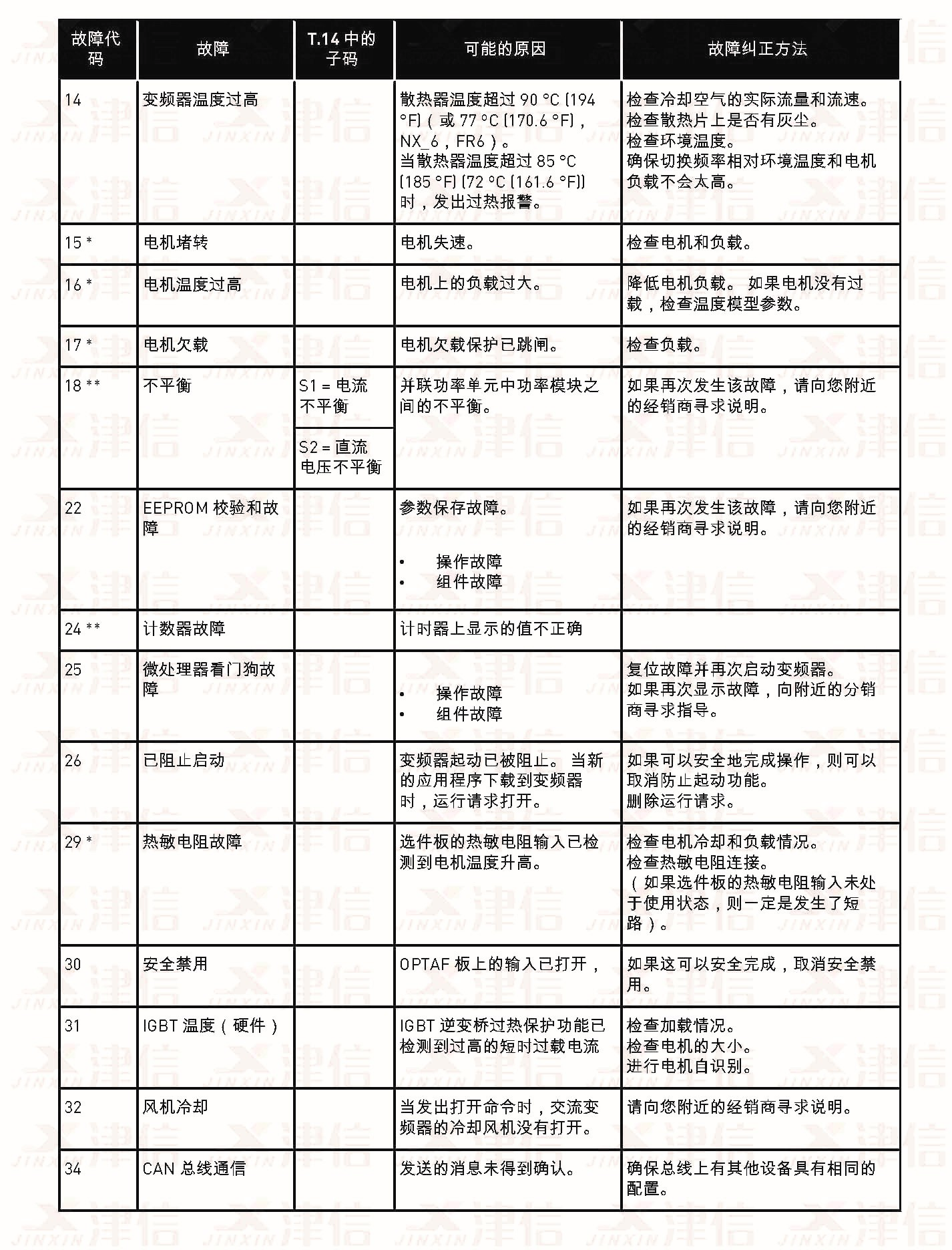 三、偉肯NX變頻器故障代碼FT14,15,16,17,18,22,24,25,26,29,30,31,32,33,34