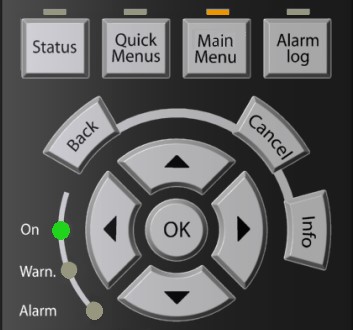 丹佛斯變頻器參數(shù)通過操作面板進(jìn)行設(shè)置。其中,方向鍵代表設(shè)置對象的切換選擇,上下兩鍵對設(shè)置值進(jìn)行設(shè)定,OK鍵代表確認(rèn)選擇,Back代表返回上一級菜單,Cancel代表取消當(dāng)前設(shè)置選擇,Info鍵代表查看幫助信息。