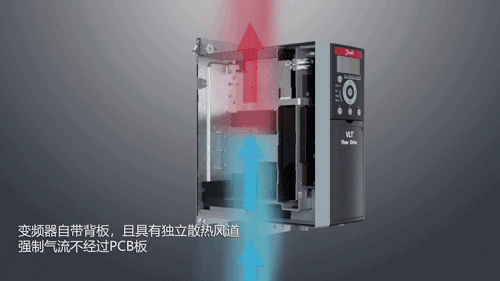 3、變頻器自帶背板,且具有獨立散熱風道,強制氣流不經過PCB板