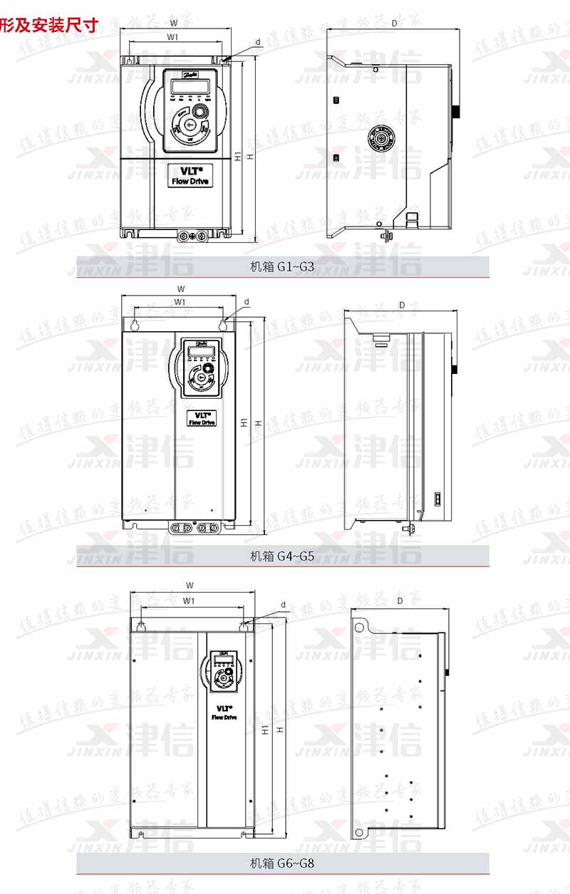 | 機(jī)箱型號 | 適配的功率范圍 (kW) | 外形尺寸 (mm) | ||||||