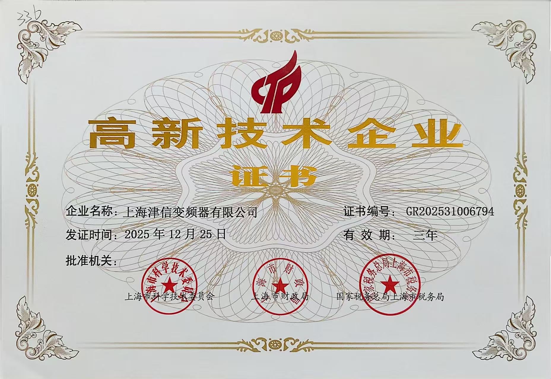 從2016年起,上海津信連續多年通過了上海市科學技術委員會、上海市財政局、上海市國家稅務局和上海市地方稅務局等四部門的聯合評審驗收,被認定為“國家高新技術企業”。