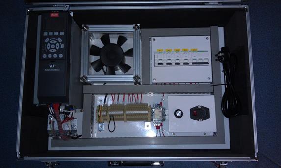 2013年1月,由上海津信變頻器公司和贏創(chuàng)德固賽特種化學(xué)有限公司共同研制開(kāi)發(fā)了一款以丹佛斯變頻器為核心部件,專為模擬現(xiàn)場(chǎng)風(fēng)機(jī)水泵進(jìn)行通訊控制而設(shè)計(jì)的通訊測(cè)試箱(如下圖所示)。