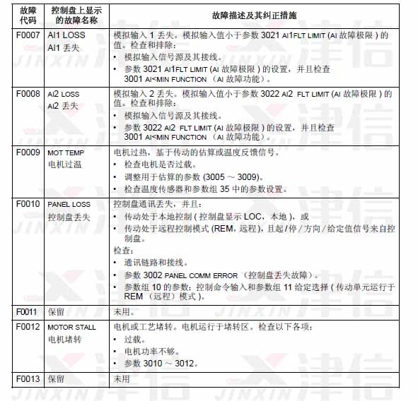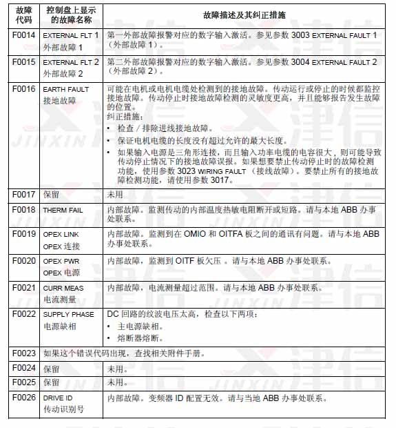 可以通過MENU/ENTER鍵來清除故障信息。如果故障依然存在,故障信息會在幾秒鐘后再次出現(xiàn)。此時需要根據(jù)故障代碼來進行相應(yīng)的檢查和采取應(yīng)對措施。