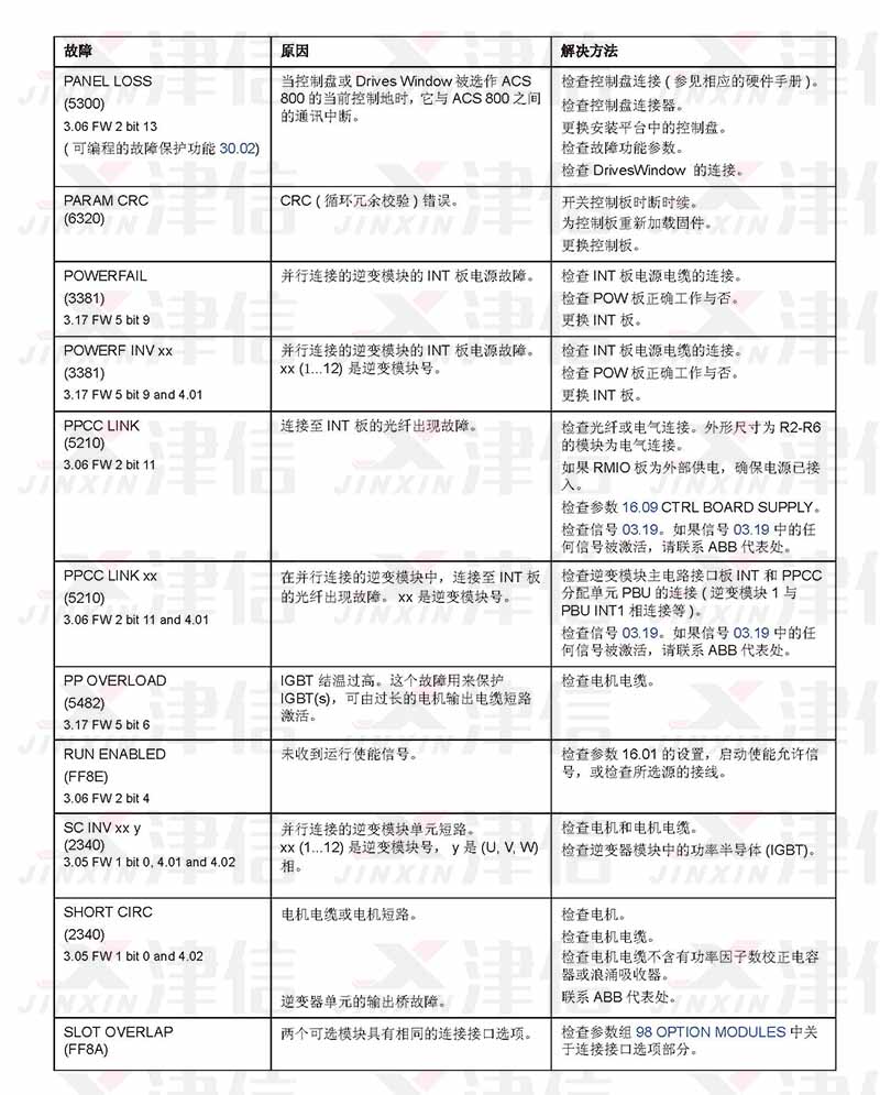 ABB ACS800變頻器故障代碼和維修措施