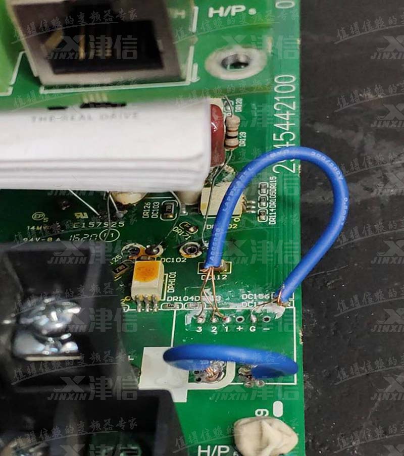 將電流傳感器拆除做單板測試,送電后仍然報(bào)警cd3.1,根據(jù)電流傳感器線路,將板卡上的G點(diǎn)和1,2,3三個(gè)點(diǎn)短接(如下圖3所示) 傳感器型號:6900,(如下圖4所示)