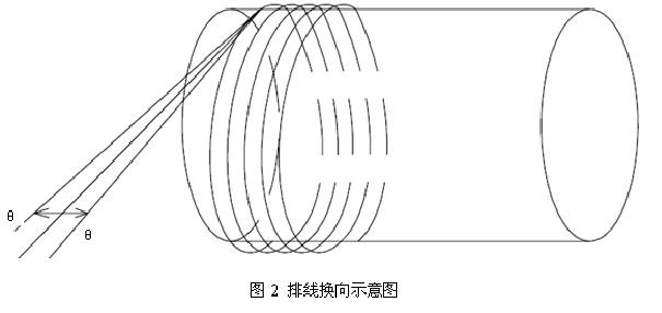 在解決方案中,著重改善收線排線和放線排線的方向切換,如圖2所示,在排線到收線盤邊緣時,即換向時提高排線伺服速度,從該排線方向的排線成型角度跳轉到相反排線方向的排線成型角度,消除了低速換向導致的凸肩現(xiàn)象,使排線平整。
