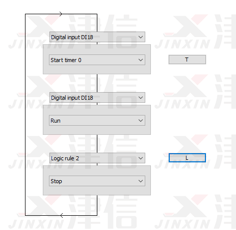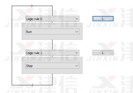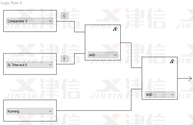 斷線停機(jī)功能通過(guò)SLC邏輯輔助完成。SLC邏輯流程圖如下,Logic Rule 0判斷是否符合啟動(dòng)條件,Logic Rule 1判斷是否符合停止條件。