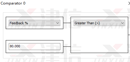 斷線停機(jī)功能要靠變頻器的采用SLC邏輯輔助完成。SLC邏輯流程如下,18號(hào)端子閉合后,變頻器運(yùn)行,并開(kāi)啟時(shí)間繼電器0時(shí)間,時(shí)間繼電器0延時(shí)時(shí)間到并檢測(cè)到反饋值超出范圍,則停機(jī)。運(yùn)行過(guò)程中端子27斷開(kāi),也停機(jī)。