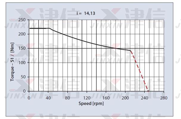 參考OGD電機(jī)選型樣本,OGDSK214K13電機(jī)的轉(zhuǎn)速-轉(zhuǎn)矩特性如下: