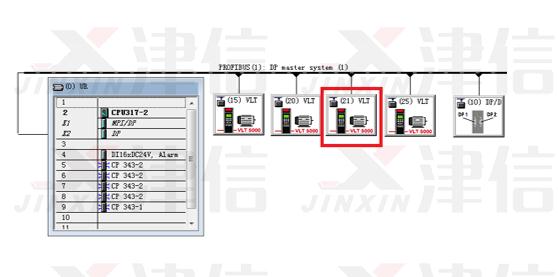 為使改造系統(tǒng)完美,在第一種方案試機(jī)成功以后,我們又為客戶設(shè)計(jì)了第二套改造方案,將從機(jī)變頻器也加入到DP總線上,