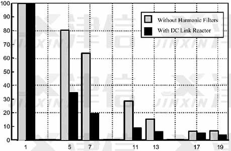 最后我們通過實(shí)際測(cè)量計(jì)算得到的真實(shí)數(shù)據(jù),來說明雙直流電抗器對(duì)高次諧波的明顯抑制作用。