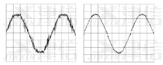 u 圖9所示是加裝直流電抗器以后測(cè)量到的電源電壓的波形。可以看出電源電壓得到了明顯的改善,平頂波消失了,傳導(dǎo)干擾明顯減小。電源電壓更接近于平滑的正弦波。